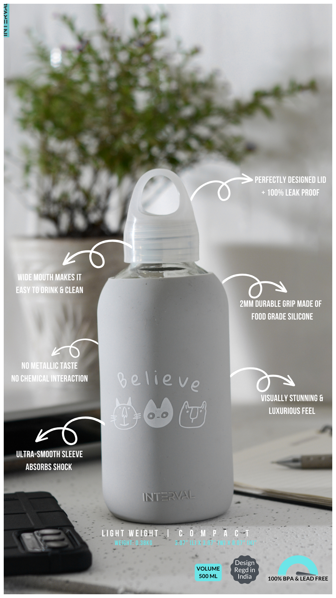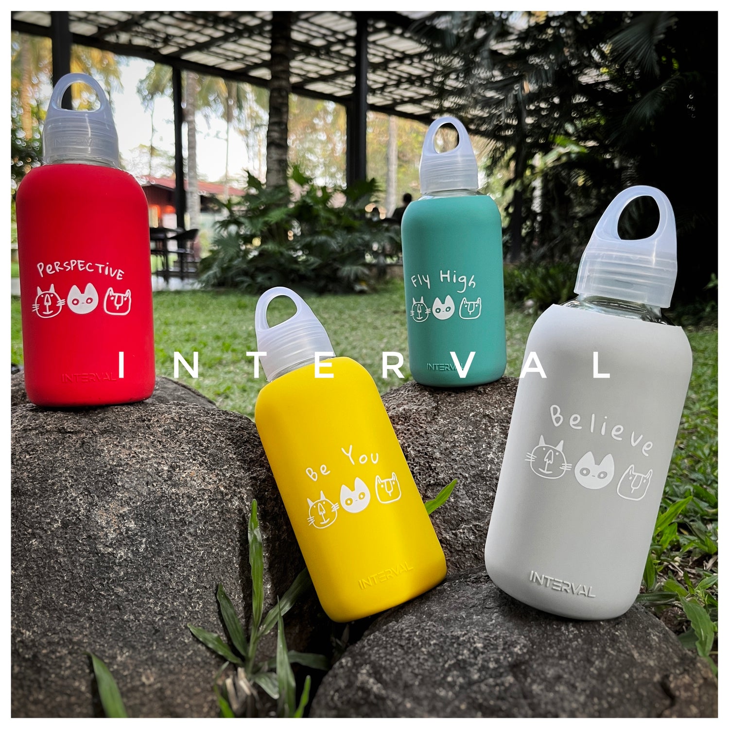 Whether you're embarking on a challenging hike, conquering a busy workday, or simply enjoying a leisurely stroll in the park, our Interval glass water bottles are always by your side.